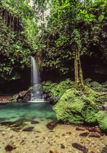 Dominica, „die Naturinsel“, ist eine der geografisch jüngsten, aber sicherlich auch schönsten Inseln in der Karibik, fernab des Massentourismus. Hohe Berggipfel inmitten von immergrünem Regenwald beherrschen das Landschaftsbild Dominicas und bieten unberührte Natur von atemberaubender Schönheit.