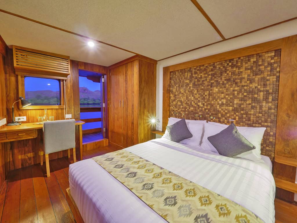 Möchten Sie die Nacht unter freiem Sternenhimmel und nicht im komfortablen Bett in Ihrer Doppelkabine verbringen? Dann finden Sie auf dem Oberdeck Decken und einen herrlichen Blick weit über den Horizont hinaus. Sehen Sie sich auf Ihren Tauchgängen die herrlichen, von Menschenhand unberührten Riffe mit ihrer vielseitigen Tier- und Pflanzenwelt an. Wenn Sie einmal in Komodo tauchen waren, werden Sie gerne wiederkommen und sich dieses Erlebnis noch einmal gönnen möchten. Für erfahrene Taucher gibt es sehr strömungsreiche Tauchplätze, an denen Sie Haie, Mantas und andere Großfische in ihrem natürlichen Habitat beobachten können. Stellen Sie sich bei einer Tauchsafari in Komodo auf ein Erlebnis ein, das Sie an keinem anderen Ort der Welt in einem so abwechslungsreichen und atemberaubenden Flair genießen können.
