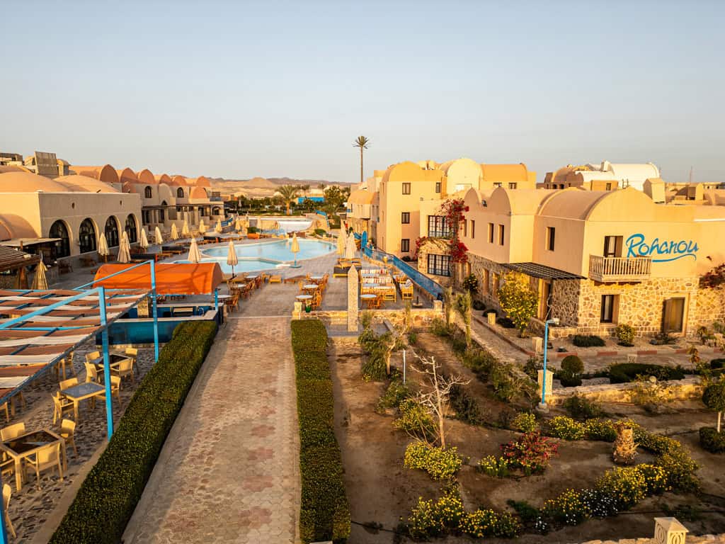 Die Rohanou Beach Resort & Eco Lodge hat eine für Ägypten kleine Anlage mit traumhafter Strandlage. Taucher, die eine gemütliche Unterkunft zum Entspannen suchen, sind hier genau richtig. Das Resort ist mit 80 Zimmern überschaubar groß und die Wege angenehm kurz.