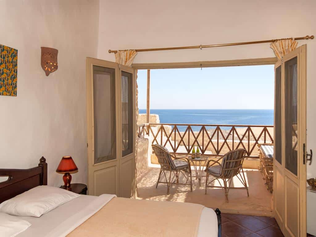 Die 49 Chalets sind wie ein Beduinendorf mit kleinen Gassen und Treppen um das Haupthaus herum angelegt. Das Hauptgebäude beherbergt neben der Rezeption auch Büros, das Restaurant, einen kleinen Basar und natürlich auch die Tauchbasis. Das mehrsprachige und erfahrene Tauchlehrer- und Divemaster-Team bildet nach SSI- und PADI-Standards aus.