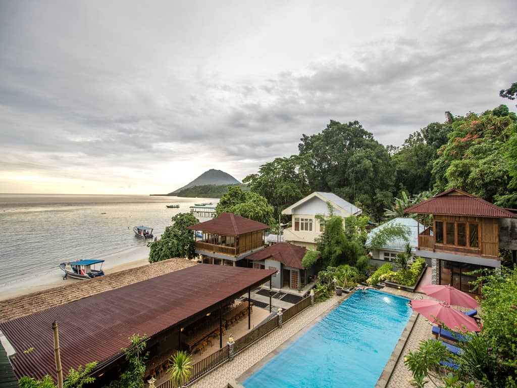 Das Resort liegt an der Westküste von Bunaken an einem Sandstrand und garantiert neben einem spektakulären Tauchgebiet eine gemütliche und ruhige Atmosphäre.