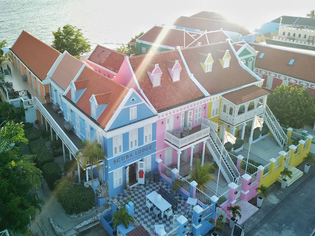 Die Scuba Lodge & Ocean Suites ist ein kleines und persönliches Boutique- Hotel im Herzen von Curaçaos Hauptstadt Willemstad, direkt am Strand gelegen. Otrabanda, die Königin- Emma-Brücke sowie der schwimmende Markt, an dem aus zahlreichen Booten heraus frische Ware verkauft wird, sind in nur wenigen Gehminuten zu erreichen. Die Apartments der Scuba Lodge verfügen über ein bis drei Schlafzimmer, die jeweils mit eigenem Bad und Klimaanlage ausgestattet sind, sowie ein Wohnzimmer mit Küche. Vom Balkon oder von der Terrasse der voll renovierten Apartments genießen Sie einen herrlichen Blick über das Meer oder die bunten historischen Häuserfassaden.