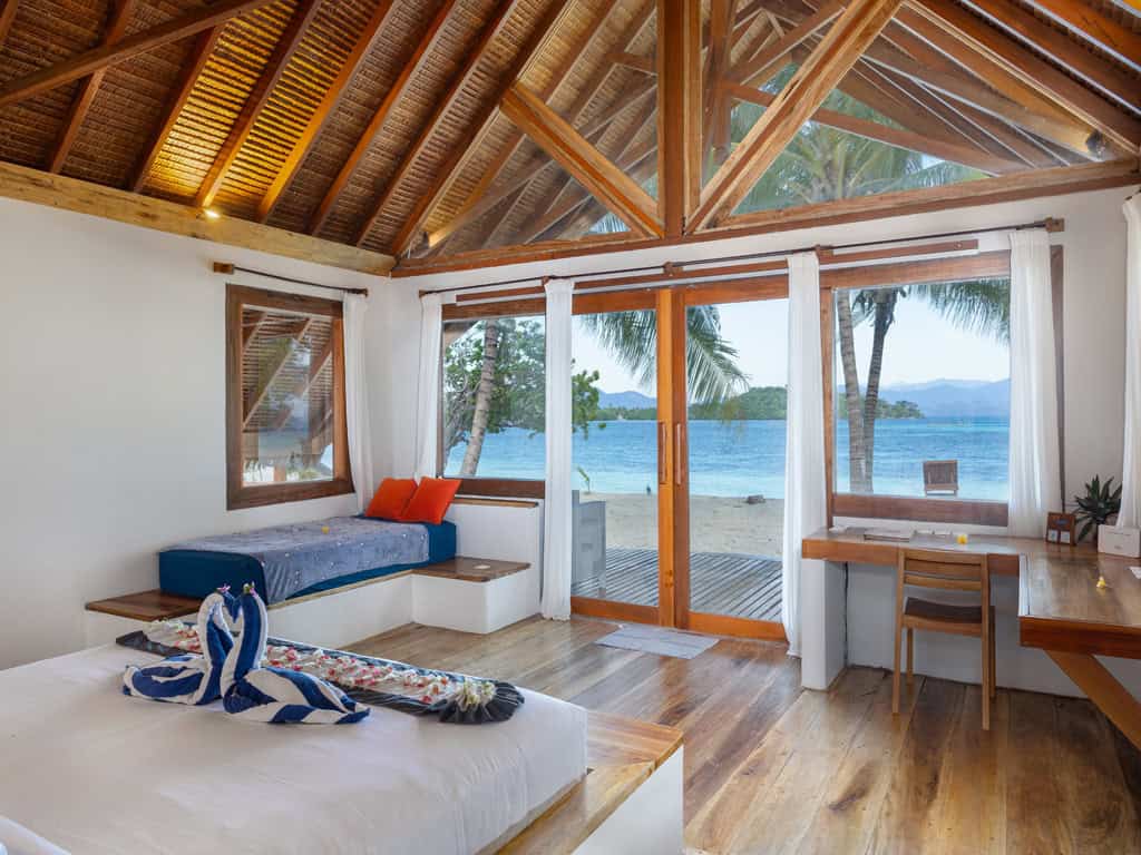 Das Saronde Island Resort hat nur 6 private Villen, die allesamt geräumig sind und einen tollen Meerblick haben. Jede Villa hat einen Privatstrand mit eigener Terrasse und Sonnenliegen, sowie einen Esstisch und eine Couch. Minibar, Safe, Wasserspender, Kaffee- und Teezubehör, kostenloses WLAN und ein offenes Badezimmer mit Regen-Dusche gehören ebenso zur Ausstattung.