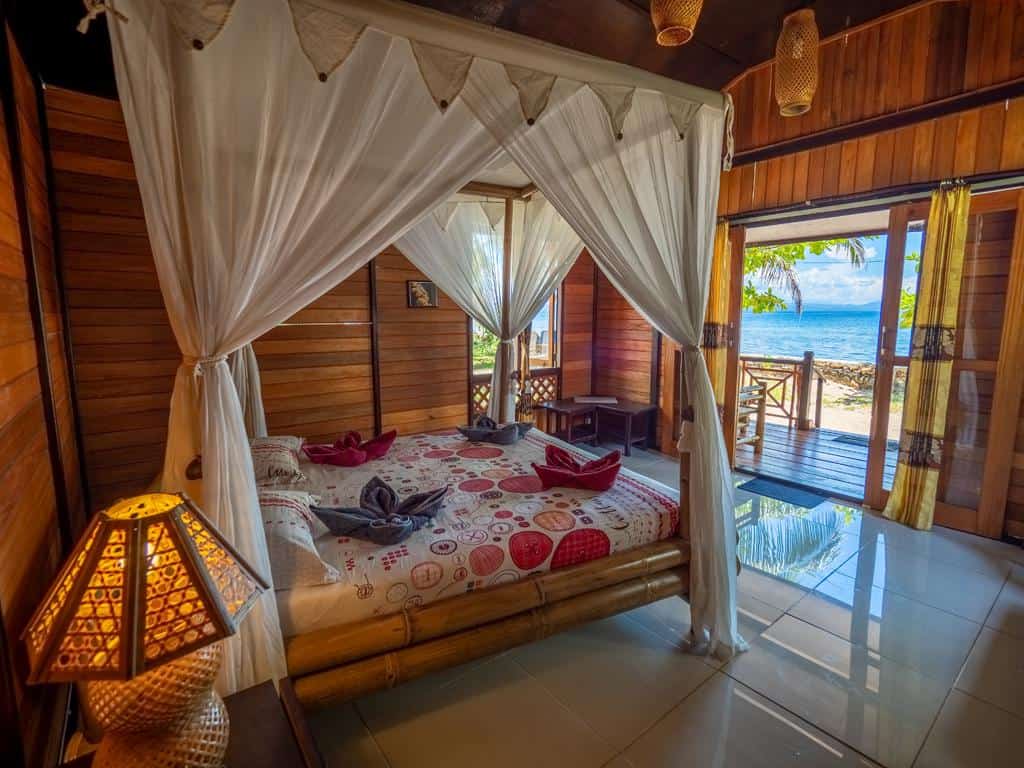 Das Sea Souls Tauchresort ist ein kleines Tauchresort und verfügt über sechs Strandbungalows für je zwei Personen. Ein Zustellbett ist auf Wunsch möglich. Die Bungalows wurden nach indonesischer Bauart errichtet. Eine große Fensterfront, zwei seitliche Fenster und Ventilatoren sorgen für eine natürliche Klimaanlage. Badezimmer sind mit Dusche, WC und Wachbecken nach europäischem Standard ausgestattet. Auf den großzügigen Terrassen hat man einen direkten Blick auf das Meer und die Vulkane Sulawesis.