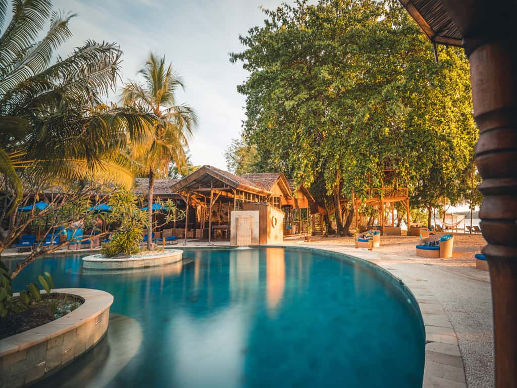 Die kleine Insel Siladen liegt mitten im Bunaken Nationalpark, vor der Nordküste von Sulawesi. Das Siladen Resort & Spa befindet sich direkt an einem wunderschönen Korallenstrand und hat einen tollen Blick auf den Vulkan Manado Tua. Der Transfer vom Flughafen Manado dauert per Bus und Boot ca. 90 Minuten.