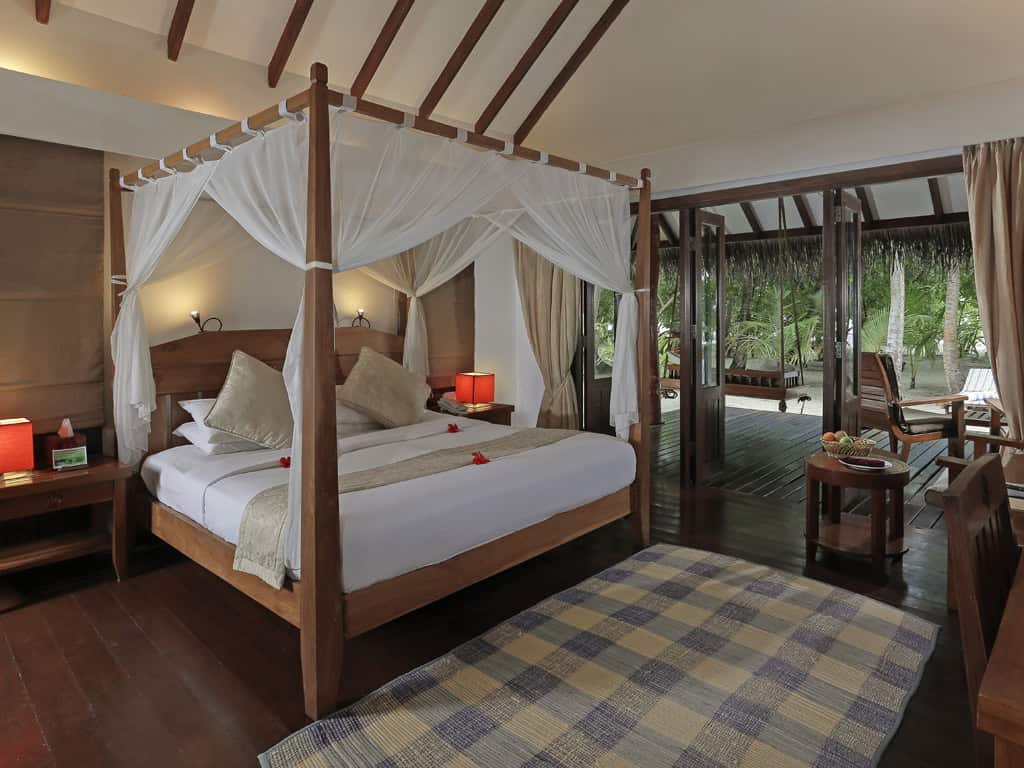 Das 4-Sterne Medhufushi Island Resort bietet Ihnen eine luxuriöse Unterkunft. Alle Beach Villas liegen malerisch am weißen Sandstrand, umgeben von der üppigen Vegetation des Hotelgartens, und sind geräumig und komfortabel ausgestattet. So verfügen sie über ein King-Size Bett oder zwei Einzelbetten, Terrasse mit direktem Strandzugang, Klimaanlage, Satelliten- TV, Minibar und Badezimmer mit offener Dusche.