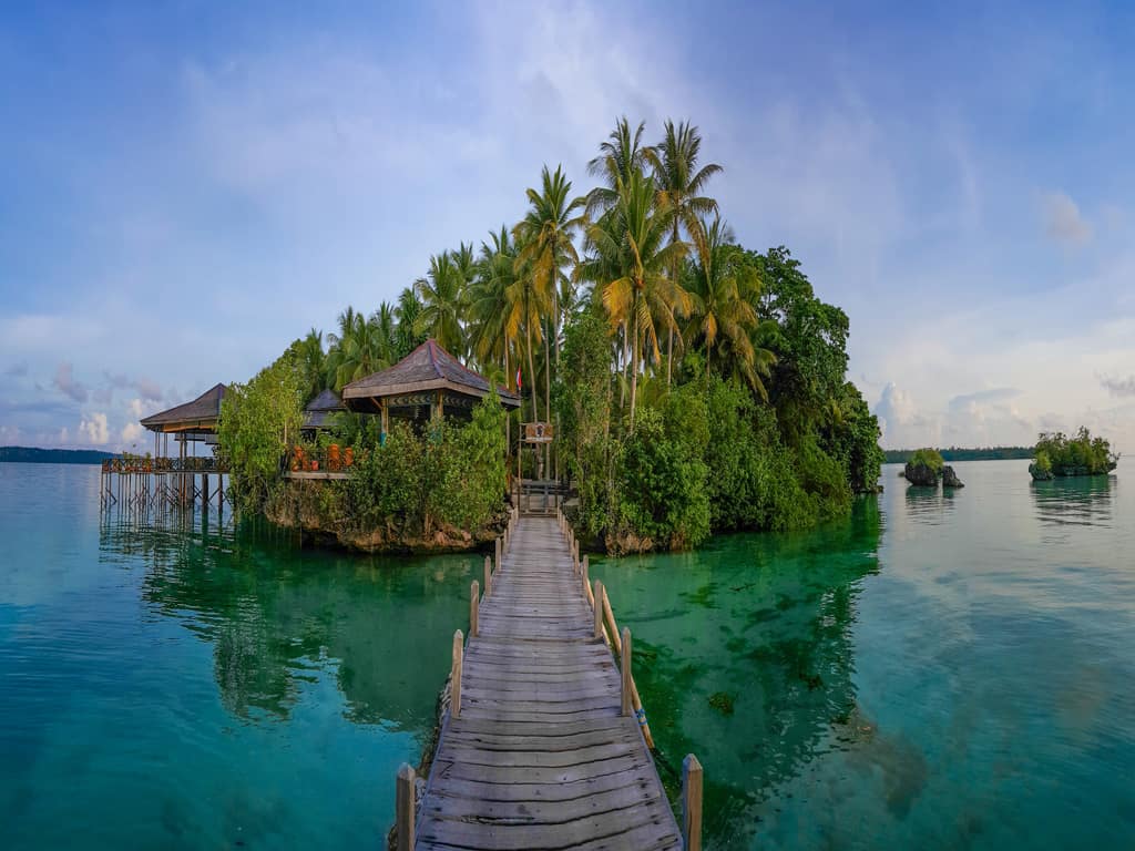 Das Nabucco Island Resort verfügt über 8 Doppelbungalows und einen Einzelbungalow im landestypischen Still. Rund um die Insel gibt es einige kleine Sandstrände. Je nach Gezeiten ist schwimmen manchmal nur am Bootssteg möglich, wo auch Schnorchler einen komfortablen Einstieg finden. Das gemütliche Resort wurde nach ökologischen Gesichtspunkten errichtet, weshalb die Insel heute noch Heimat von seltenen Kokosnusskrabben, Waranen, Eisvögeln, fliegenden Hunden und anderen Tierarten ist.