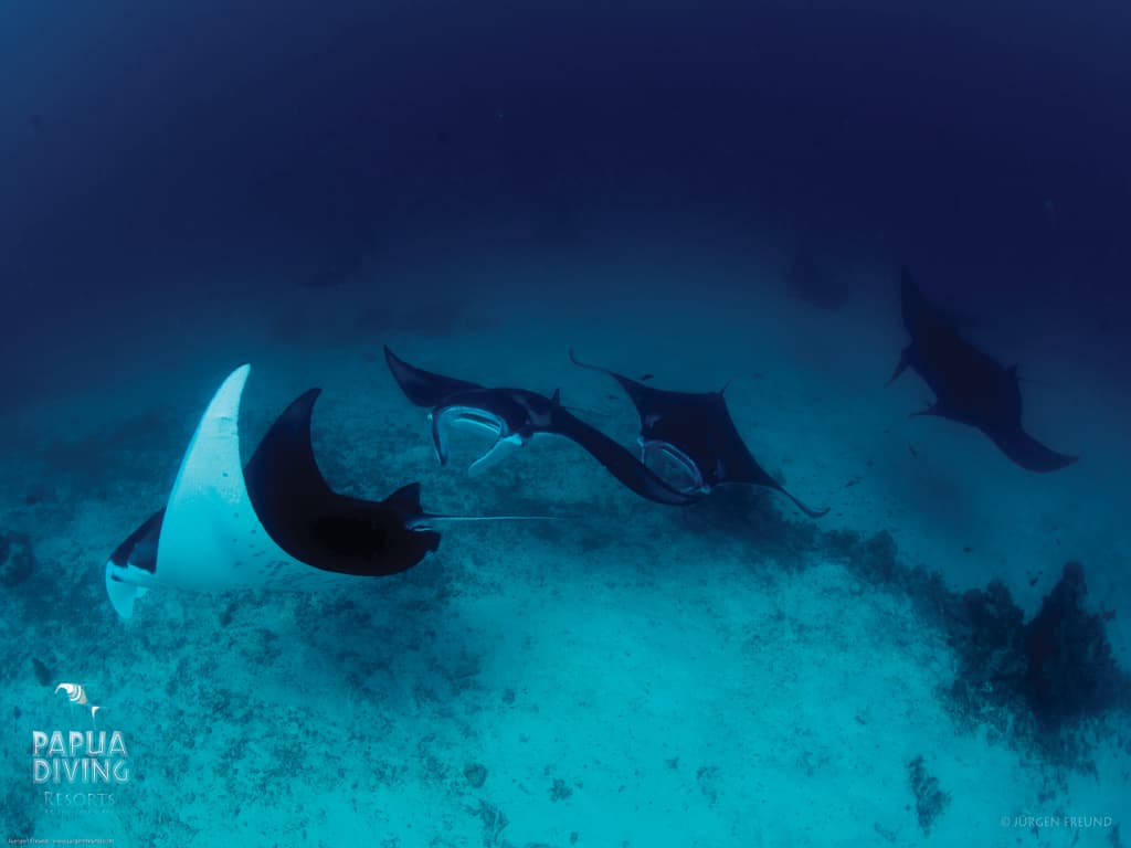 Aufgrund der teilweise starken Strömungen wird in Raja Ampat häufig mit Riffhaken getaucht. Ganzjährig angenehme Luft- und Wassertemperaturen sowie Sichtweiten von 15 bis 20 Meter bieten ideale Tauchbedingungen.