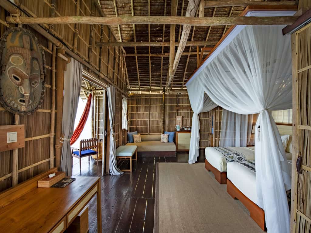 Das Papua Paradise Eco Resort wurde in traditionellen Stil erbaut. Die Bungalows sind gut belüftet, weshalb bewusst auf Klimaanlagen verzichtet wurde. Warmwasser wird über eine Solaranlage erzeugt und Frischwasser reichlich vorhanden. Das Management ist stolz darauf ein „richtiges“ Eco Resort zu sein.