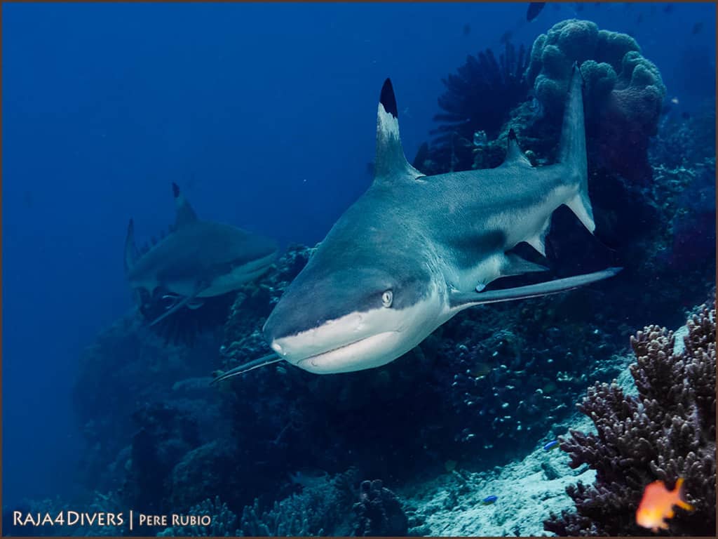 Mehr als 60 Tauchplätze sind von Pulau Pef aus erreichbar. Highlights wie der Tauchplatz „The Passage“ oder Manta-Stationen werden natürlich ebenso angefahren. Das abwechslungsreiche Hausriff ist nicht nur für Nachttauchgänge ideal, sondern bietet auch gute Chancen für Begegnungen Riffhaien oder den für Raja Ampat einzigartigen „Walking Sharks“.