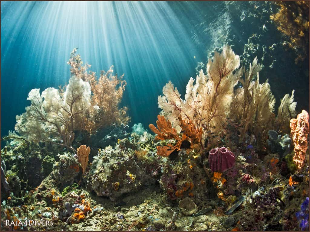 Außerdem zählen die Tauchgebiete von Raja Ampat zu den artenreichsten der Welt. So beheimaten die Riffe 75 % aller bekannten Korallenspezies und über 3.000 Rifffische.