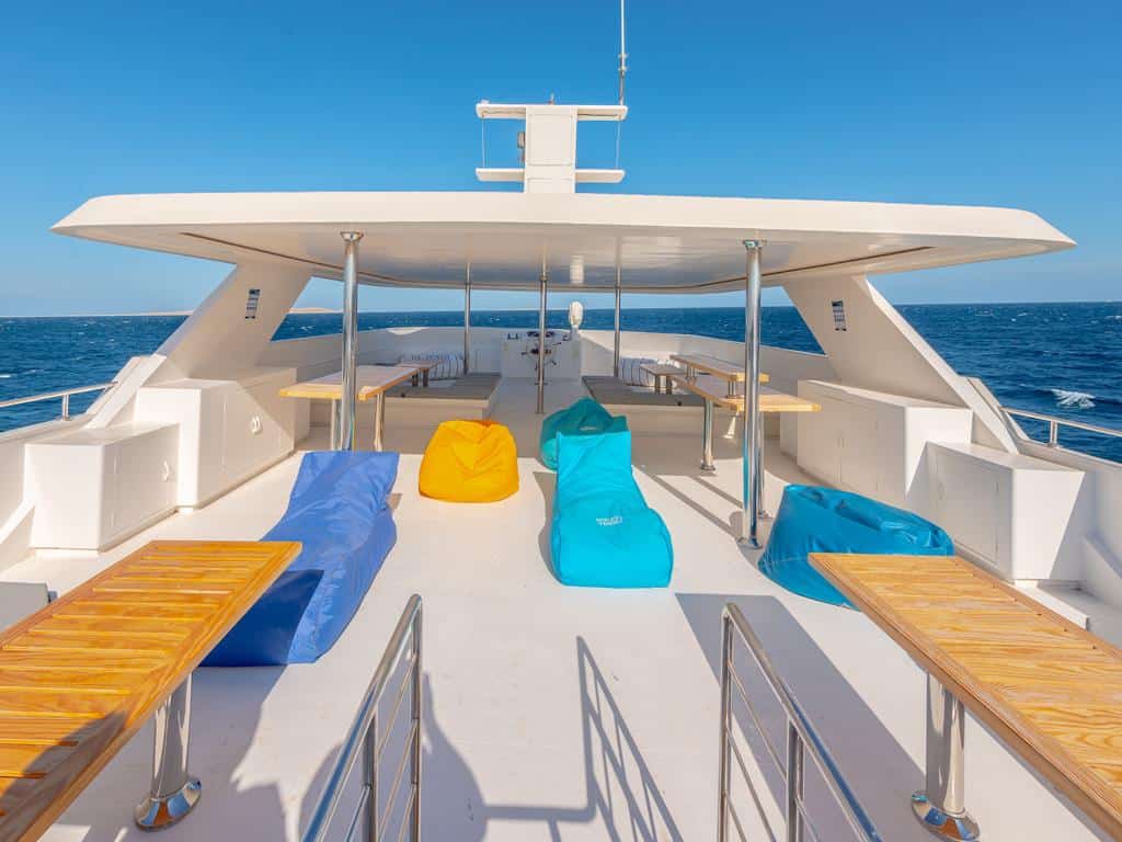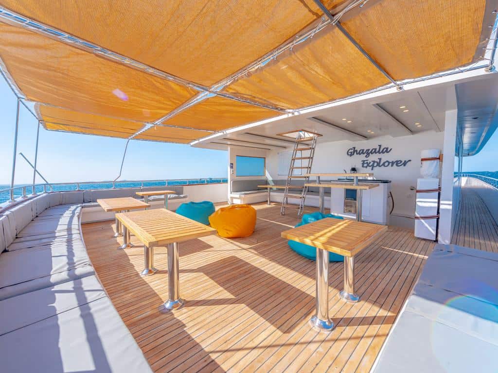 Die 2021 erbaute Ghazala Explorer besticht durch ihre moderne Ausstattung. Auf ihren 37 m Länge bietet sie insgesamt 24 Gästen ausreichend Platz. Es gibt 10 Doppelkabinen, eine Junior und eine King Suite. Alle Kabinen haben ein eigenes Badezimmer.