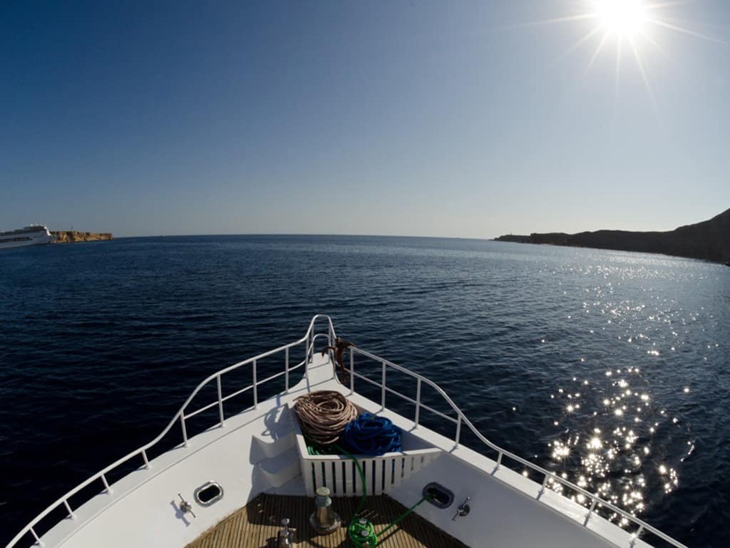 Vorbei an Dahab, dort können berühmte Tauchplätze wie Bells, Blue Hole, Canyon, Eel Garden oder Islands betaucht werden. Südlich von Dahab, innerhalb des Nabq Nationalparks, liegt Gabr el Bint, einer der besten Tauchplätze im Sinai. Getaucht wird an einer Steilwand mit intakten Tischkorallen und einem wunderbaren Gorgonienwald. Zwei Tauchgänge sind hier möglich. Nur mit dem Boot erreichbar ist Gebel El Aswad, eine Unterwasserszenerie, die wie eine Burg- oder Bergformation erscheint. Von dort ist es nicht mehr weit bis zu den vier Riffen von Tiran. Bei guten Wetterbedingungen kann das Wrack der Million Hope erkundet werden. Zurück in Sharm El Sheikh geht es zu den weltberühmten Riffen von Shark und Jolanda Riff im Ras Mohamed National Park die einen weiteren Höhepunkt bieten.