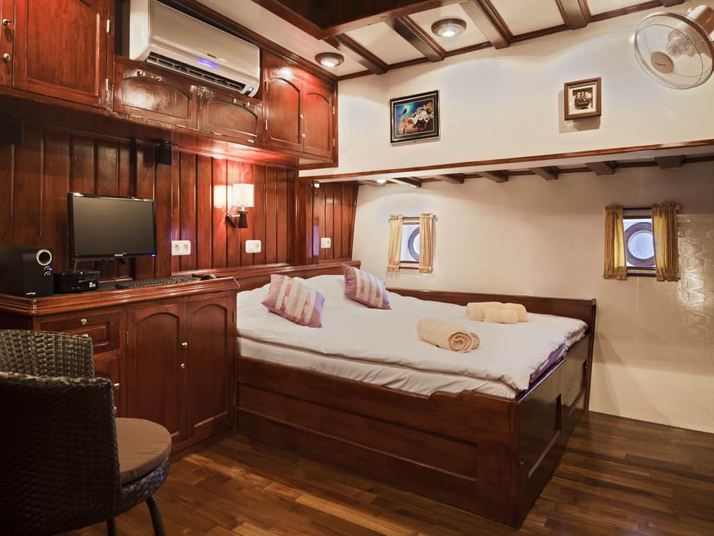 An Bord der S/Y Indo Siren finden sich 8 großzügige Kabinen, die allesamt mit individueller Klimaanlage, eigenem Badezimmer und einem Unterhaltungssystem ausgestattet sind. Die hilfsbereite Crew kümmert sich um die maximal 16 Gäste an Bord.