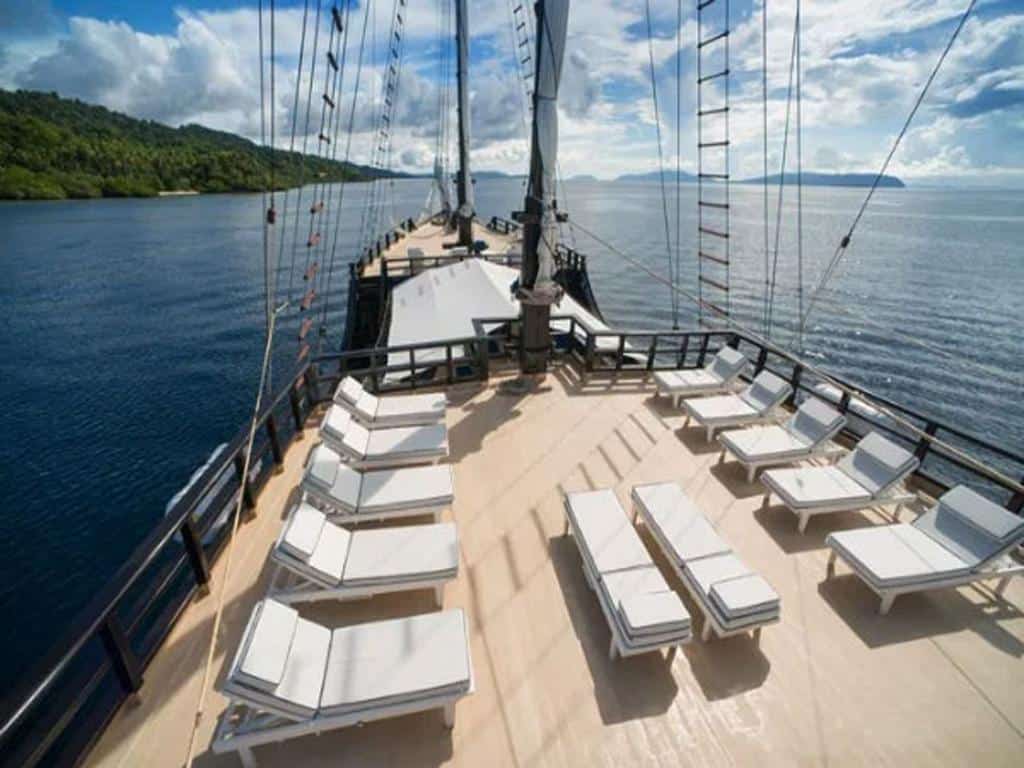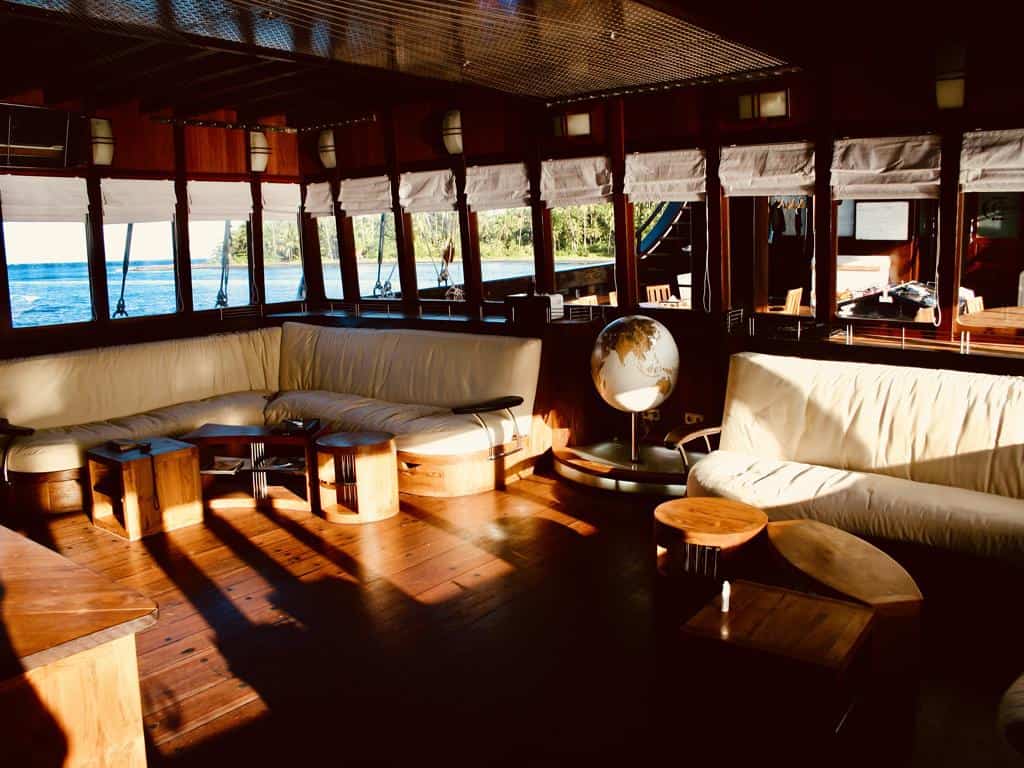 Eine große Lounge, ein großzügiger Entspannungsbereich und zwei Sonnendecks laden zwischen den Tauchgängen zum Relaxen ein. Die aufmerksame Crew bestehend aus 19 Teammitgliedern sorgt für das Wohlbefinden der Gäste. Ein Cruise Director plus vier erfahrene Divemaster kümmern sich um die Taucher. 24 Crewmitglieder für maximal 18 Gäste an Bord sorgen für eine unvergessliche Tauchsafari in Indonesien.