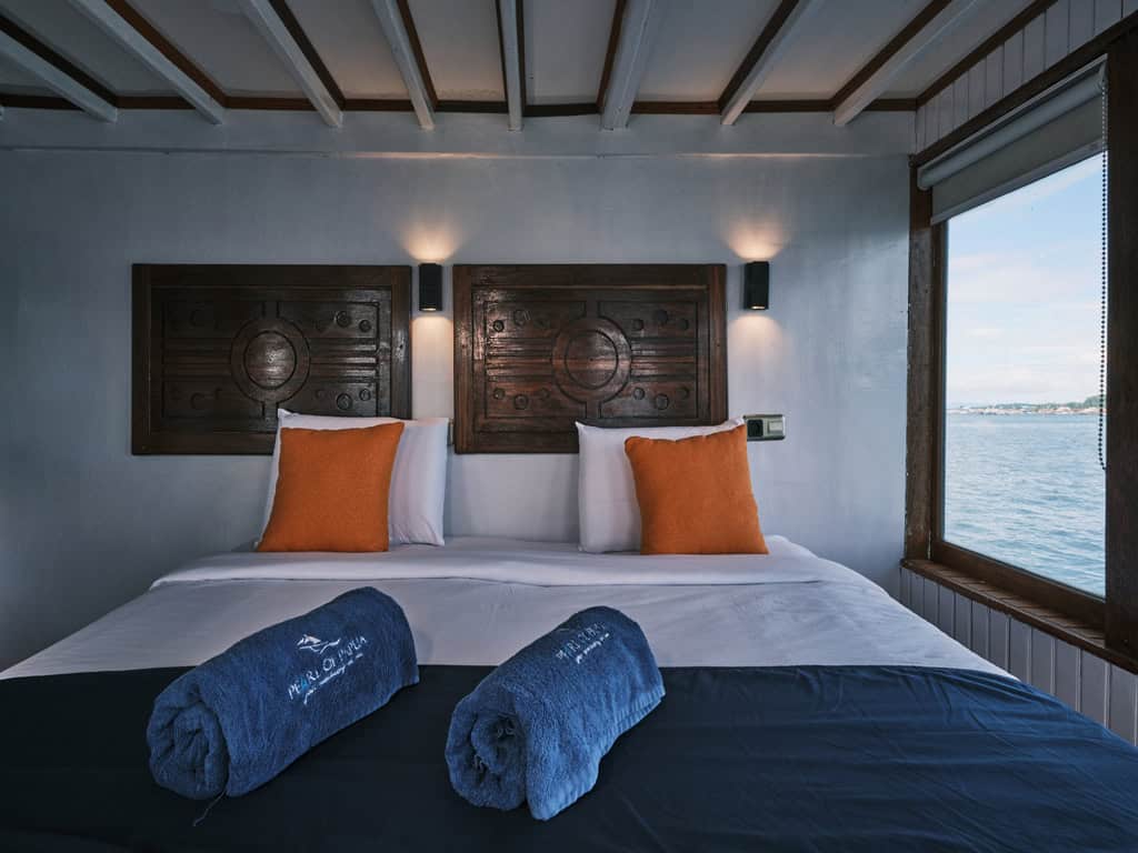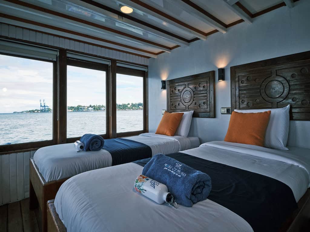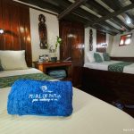 Kabinen an Bord der MV Pearl of Papua sind mit Badezimmer und Klimaanlage ausgestattet. Es gibt zwei Master-Kabinen mit Doppelbett und zwei Einzelbetten auf dem Oberdeck, eine Suite auf dem Unterdeck sowie vier Standardkabinen.